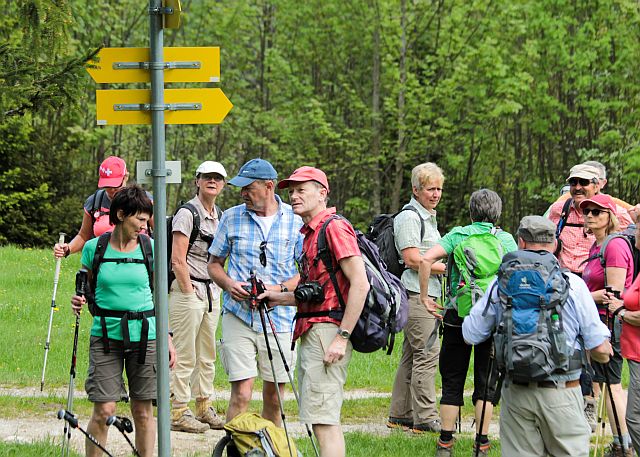 Nach dem obligatorischen Startfoto und einer kurzen Erklärung zur Wegstrecke durch Wanderführer Helmut hieß es Abmarsch. Kurz nach Verlassen des Ortes ging es dann auch schon steil bergan. Durch den schattigen Wald führte der Weg in Richtung „Hochgern“, der jedoch nicht bestiegen wurde.