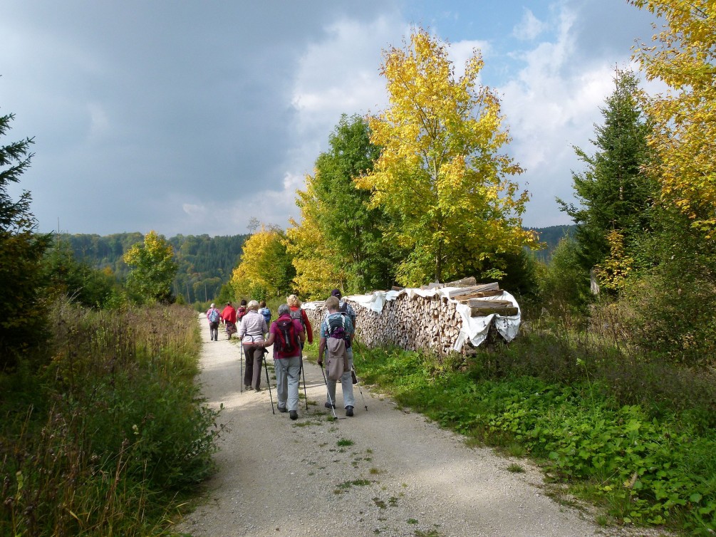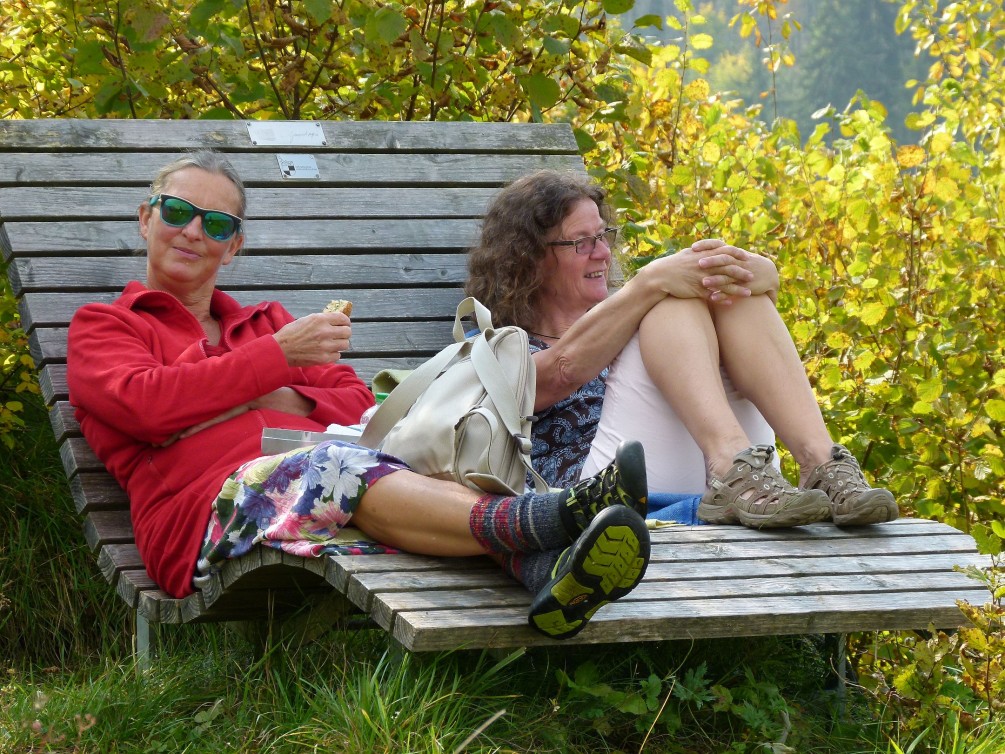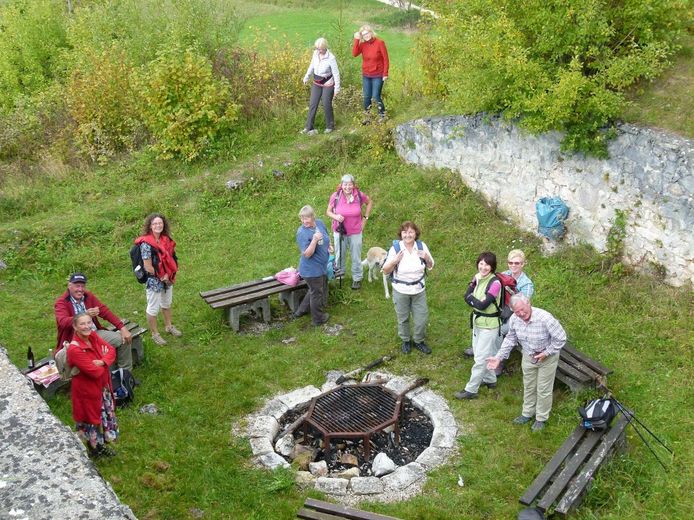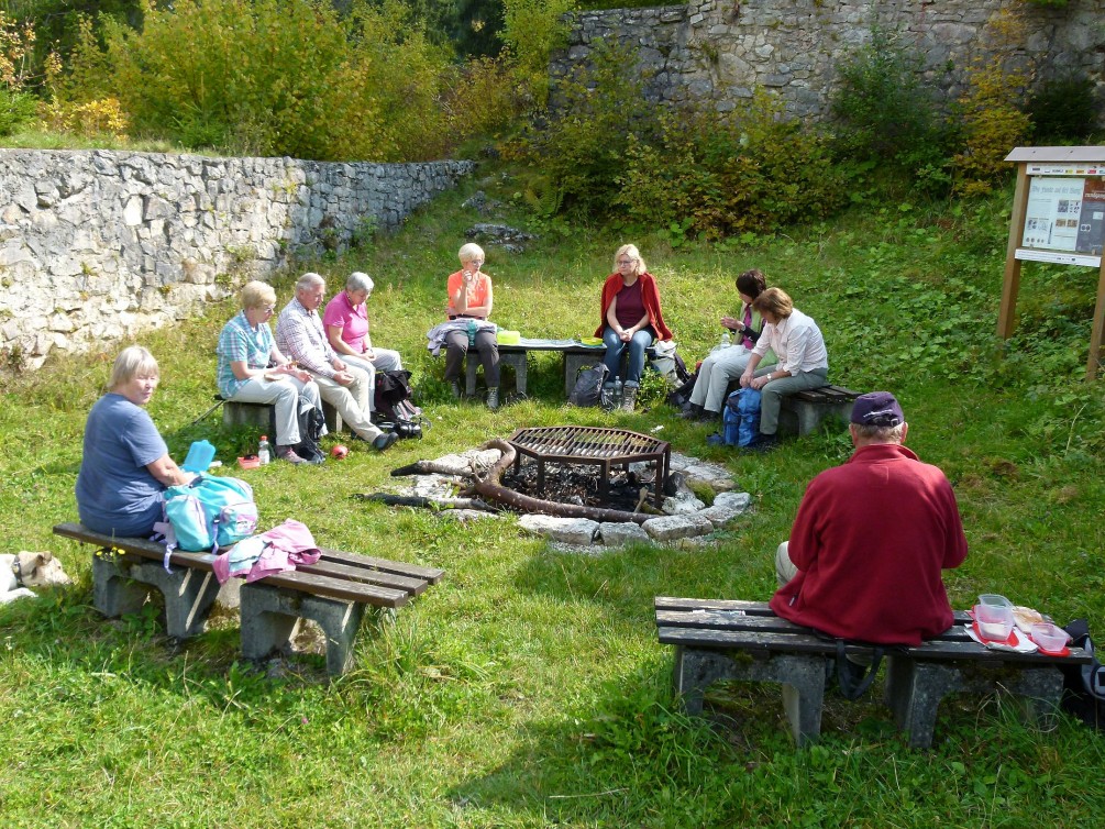 Ebenfalls um 9.30 Uhr starteten wir am Hotel unsere letzte Wanderung zum Aussichtspunkt Eschenauer Paradies. Der Weg führte über Reisach und Eichelberg hinauf auf die Höhen oberhalb des Breitenauer Sees. Bei herrlicher Aussicht wanderten wir am Trauf entlang zum Grillplatz Ammertsberg, wo wir unsere Mittagsrast abhielten. Von dort ging es über Weiler zurück zum Breitenauer See. Da es an diesem Tag angenehme Temperaturen hatte, wurde noch eine längere Pause eingelegt. Diese nutzten einige noch zum Eis essen oder Kaffee trinken und es gab sogar noch ein paar Unerschrockene, die ein Bad im See nahmen. Die Wegstrecke an diesem Tag betrug 20 km.