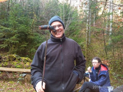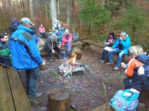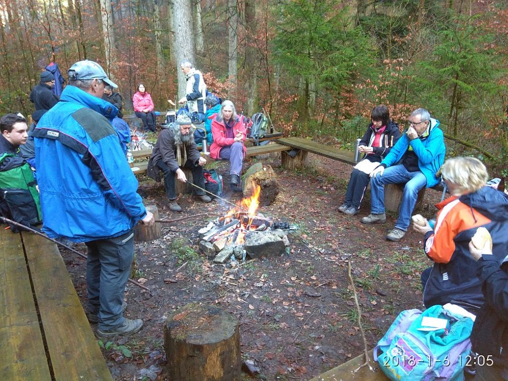 Trotzdem machten sich 15 Wanderer und ein Hund auf den Weg über die Gipsmühle in´s Mildersbachtal, wo Dank der Feuermeister bereits Alles für die erste Grillwurst des Jahres vorbereitet war.