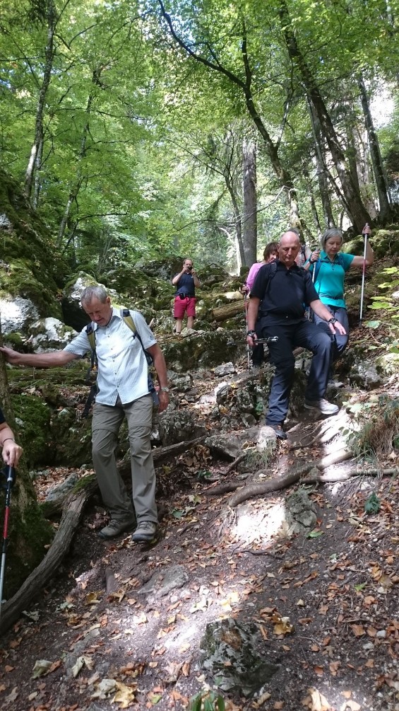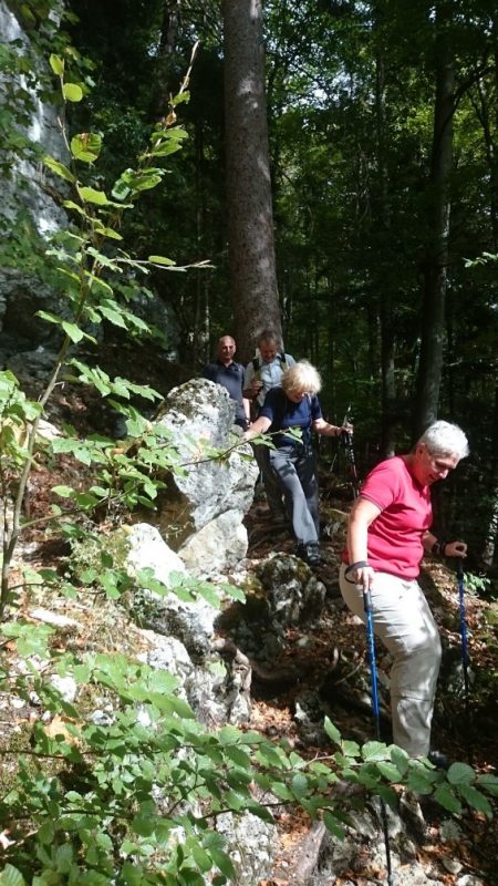 Der Rückweg zum Hotel führte dann durch die 65 m lange Oswaldhöhle, die – gut ausgerüstet mit Stirn- und anderen Lampen – angst- und unfallfrei durchquert wurde und danach über den Steilabstieg ins Tal.