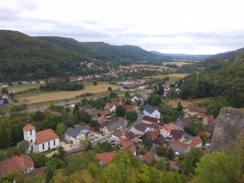 Alle 28 Teilnehmer erreichten pünktlich den Ausgangspunkt unserer diesjährigen Wanderreise, das Hotel Goldner Stern im beschaulichen Dörfchen Muggendorf im Wiesenttal. Die erste Wanderung führte Richtung Streitberg mit herrlichem Blick auf die Ruine Neideck, einem Wahrzeichen der Fränkischen Schweiz, auf der gegenüberliegenden Talseite.