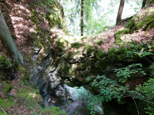 Am Samstag wurde die Gegend auf der gegenüberliegenden Talseite erkundet. Der Weg führte wieder zunächst an der Wiesent entlang und danach hinauf nach Wohlmannsgesees und zum Druidenhain, einer ca. 1 ha große Fläche mit großen, moosbewachsenen Steinen, die teilweise labyrinthartig angeordnet sind.
