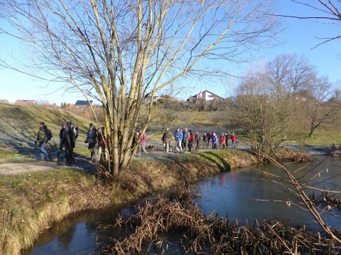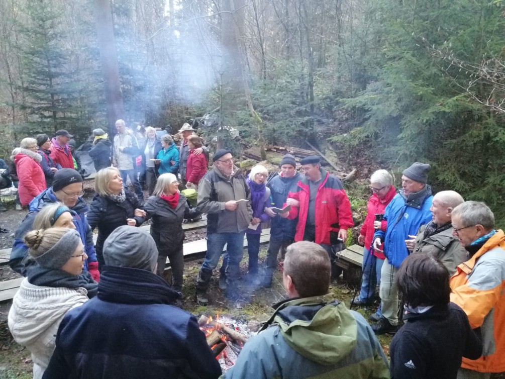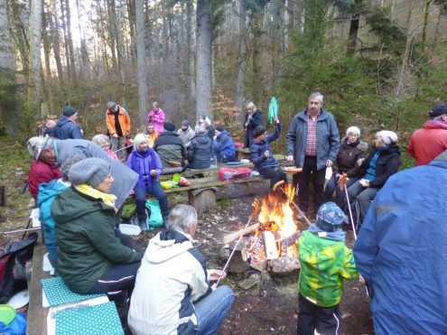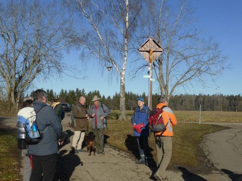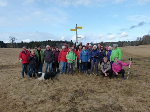Um 10.30 Uhr trafen sich 29 Wanderfreunde bei sonnigem und frostigem Wetter zu dieser Traditionswanderung an der Festhalle Ostdorf. Nach der kurzen Begrüßung wanderten wir am Biotop vorbei und durch das Industriegebiet Geislingen ins Mildersbachtal.