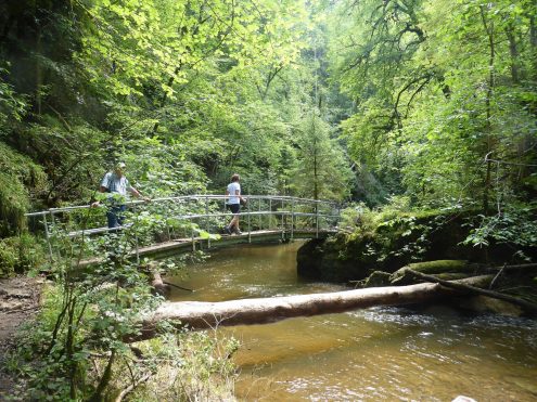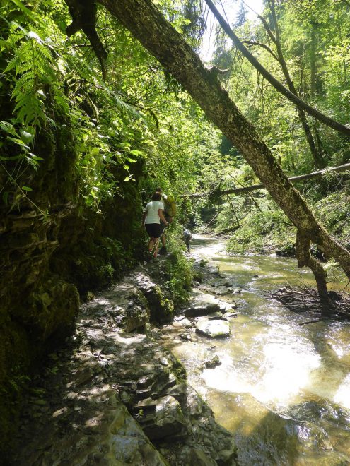 Unser Weg führt uns immer wieder an kleinen Wasserfällen über Stufen und über zahlreiche Holzstege in die immer enger und felsiger werdende Schlucht. An einer geeigneten Stelle am Bach machten wir unsere Mittagsrast.