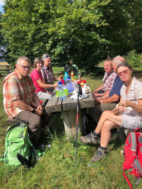 Von dort führte uns bei herrlichem Sonnenschein und angenehmen Temperaturen der Weg hinauf zum Hochberg. Bei herrlicher Aussicht zum heiligen Berg Oberschwabens, dem Bussen, und zum Kloster Obermarchtal am Bismarckstein hielten wir hier unsere Mittagsrast.
