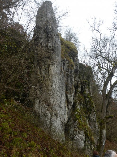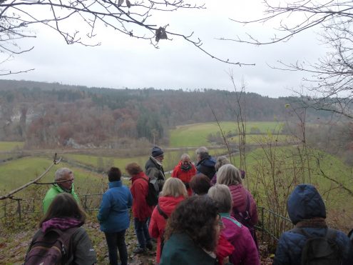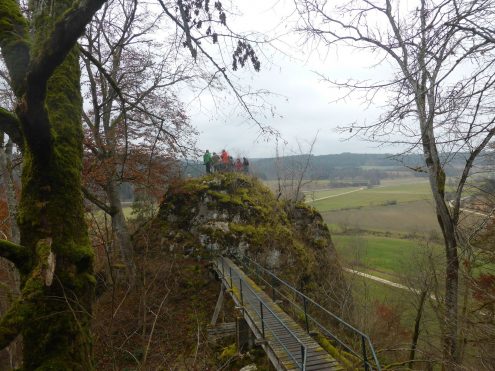 Vom Parkplatz aus führte uns der Weg gleich in den Wald. Nach kurzer Zeit erreichten wir den Nägelesfelsen. Von hier hatten wir einen herrlichen Blick hinab ins Laucherttal.