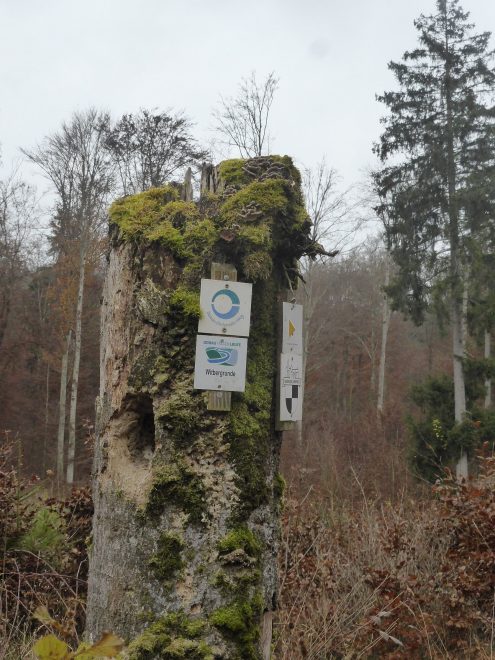 Nach diesem Felsen stiegen wir hinauf bis zu einer Abzweigung wo ein Stichweg zur Ruine Hertenstein führt.