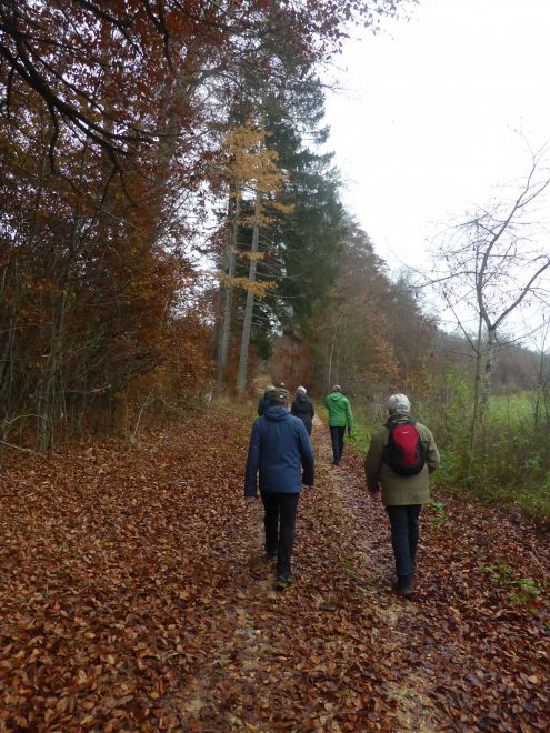 Um 13 Uhr trafen sich 26 Wanderer bei bedecktem Wetter an der Festhalle Ostdorf.