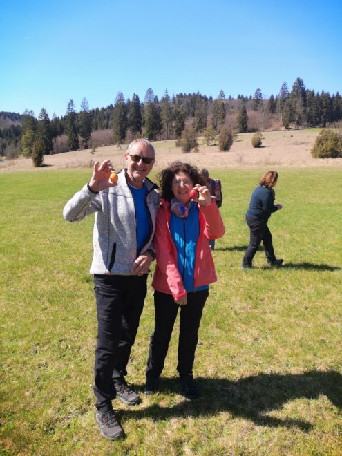Von Zwiefalten ging es durch das Rental nach Hayingen zum nahegelegenen Wanderparkplatz Digelfeld. Nach der Mittagsrast wurde das schon traditionelle Eierweitwerfen durchgeführt.