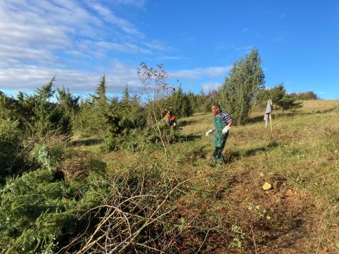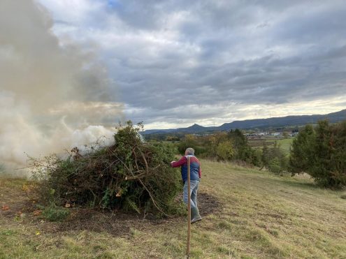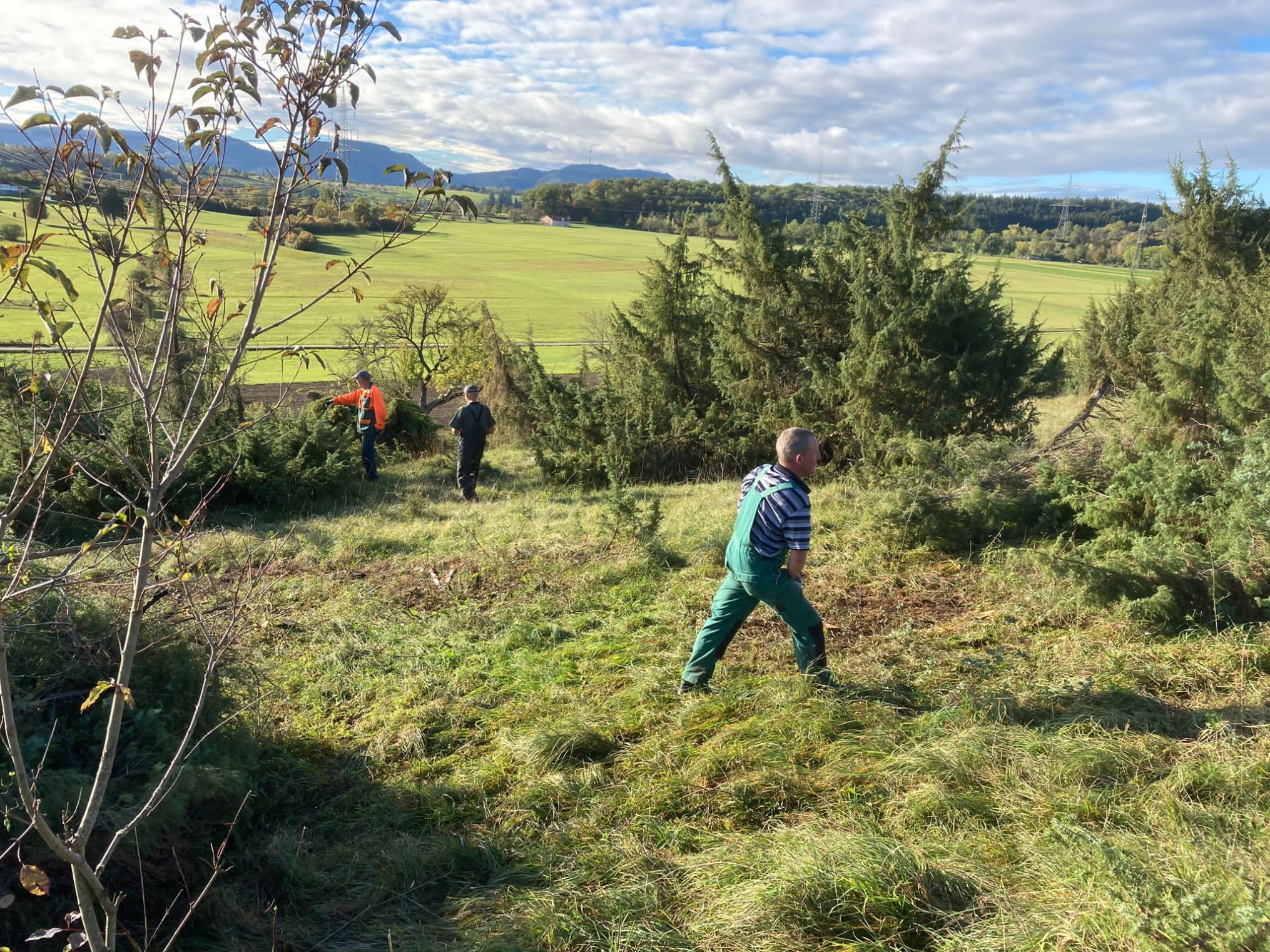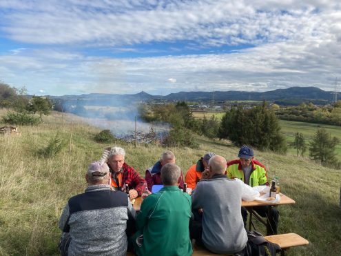 Bei insgesamt 4 Arbeitseinsätzen haben Mitglieder der Ortsgruppe Ende Oktober – wie bereits in den Vorjahren – Pflegemaßnahmen zum Erhalt der Wacholderheide auf dem Fochenzenberg durchgeführt. In Absprache mit der Naturschutzbehörde und unter Anleitung des Naturschutzwartes Richard Geiger wurde erneut eine große Fläche durchlichtet und freigeschnitten und das Schnittgut an Ort und Stelle verbrannt. Diese Arbeiten sind wichtig, damit die Wacholderheide nicht verbuscht und letztlich zuwachsen würde. Allen Helfern daher ein großer Dank für ihr tatkräftiges Anpacken zum Wohle und zum Schutz unserer Natur und Landschaft.