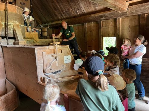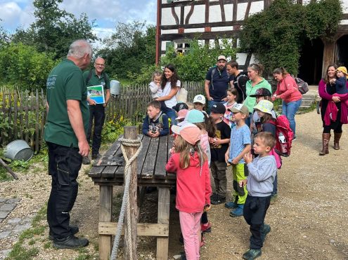 Familien des Schwäbischen Albverein Ostdorf erleben das Freilichtmuseum Neuhausen o.E.