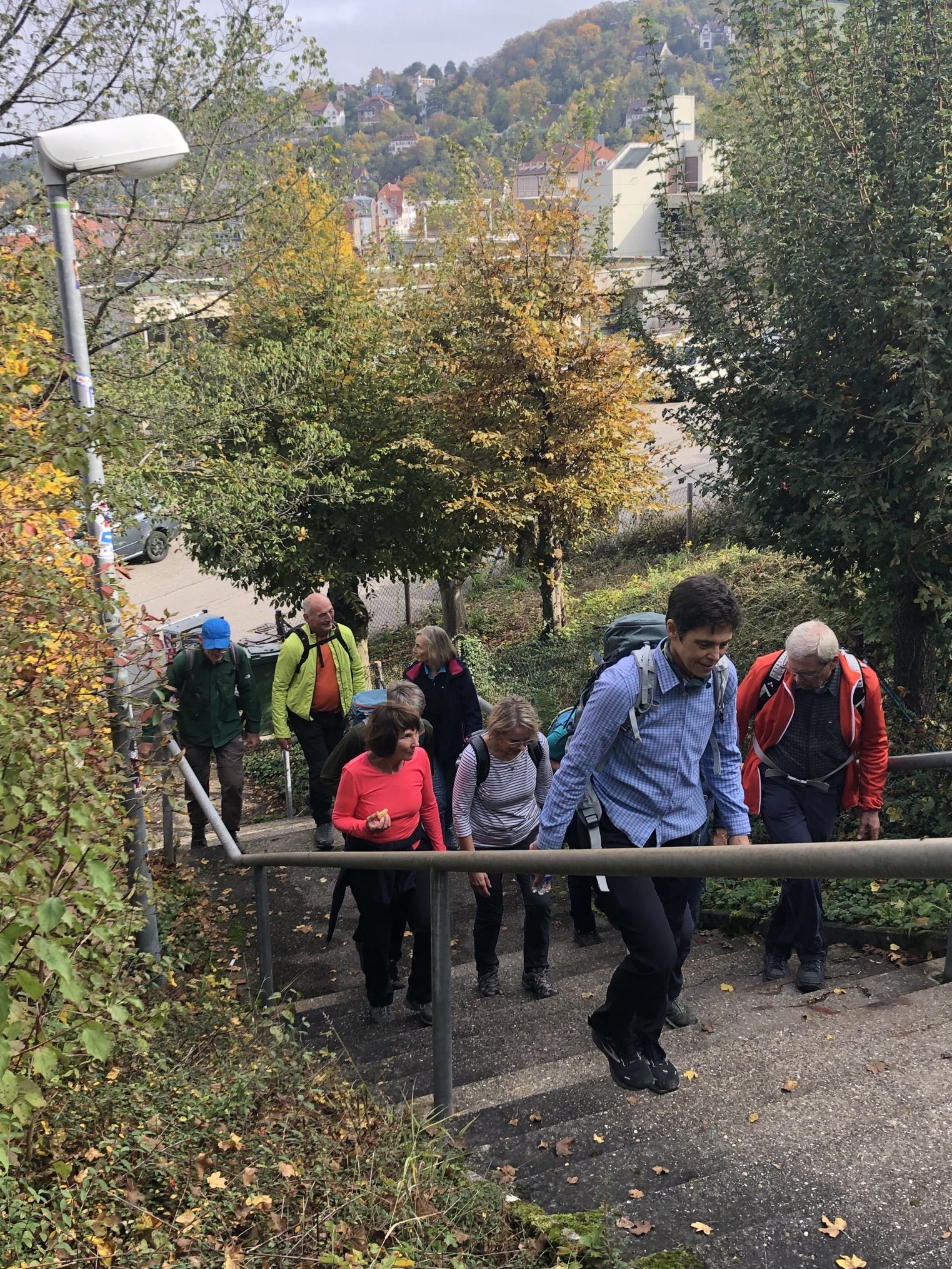 2.367 Stufen – hinauf oder hinab – so viele mussten die Teilnehmer an der Stäffeleswanderung in Stuttgart bewältigen. Dabei kamen 590 Höhenmeter zusammen – wahrlich eine ansprechende Leistung.