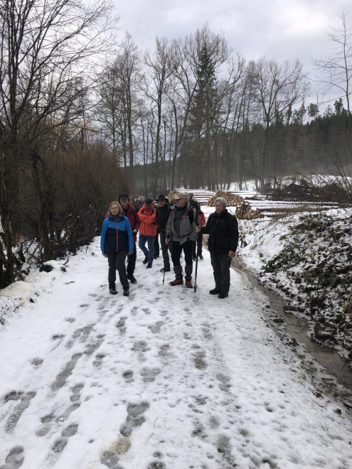 Bei bedecktem Himmel und Temperaturen um + 4oC konnte Wanderführer Helmut Haug 20 Wanderfreunde um 10.30 Uhr an der Turn- und Festhalle begrüßen.