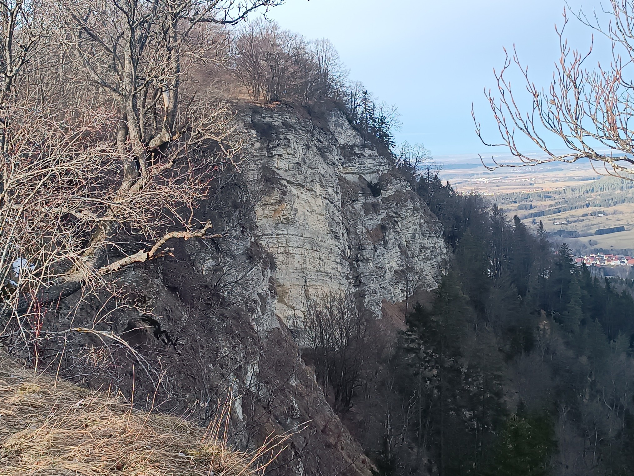 Wir wanderten durch das Eselsburger Tal, wo wir herrliche Wachholderheiden und auch verschiedene Felsformationen bestaunen konnten. Kurz vor der Biberburg verließen wir den Wanderweg, um den Buigen zu überqueren. Von dort oben hatten wir eine schöne Aussicht hinunter ins Eselsburger Tal. Weiter führte uns der Weg wieder hinunter an die Brenz und dann hinauf zur Domäne Falkenstein, wo wir unter sehr ungünstigen Witterungsverhältnissen Mittagsrast hielten.