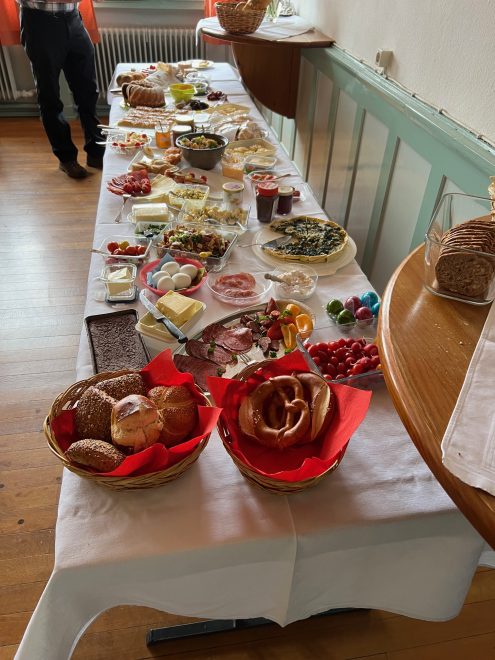 Nun fuhren wir zu unserem Standquartier Hotel Hirsch in Mergelstetten. Nach dem Zimmerbezug traf man sich im Speisesaal, um den Abend bei gutem Essen und in geselliger Runde ausklingen zu lassen.