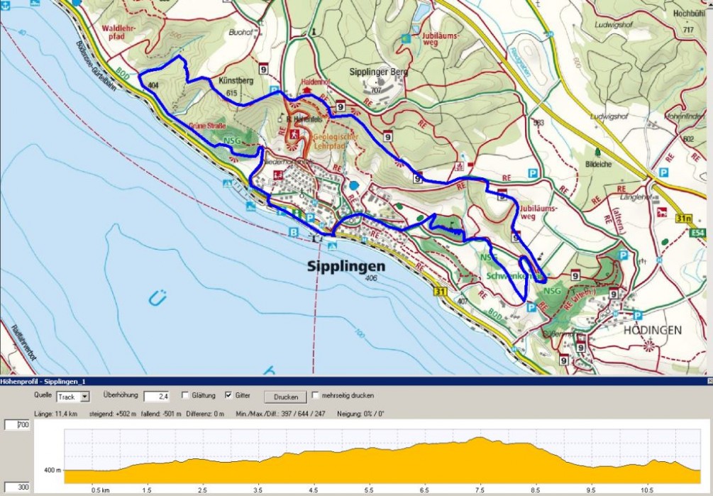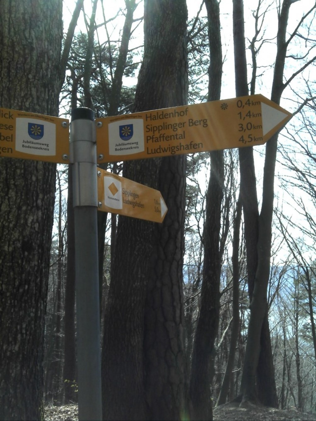 Wir durchwandern Sipplingen, wobei die ersten Höhenmeter zu bewältigen sind. Nach dem Überwinden des 563m hohen Käsberges geht es nach einem kurzen Abstieg wieder bergauf auf den Jubiläumsweg Richtung Haldenhof.