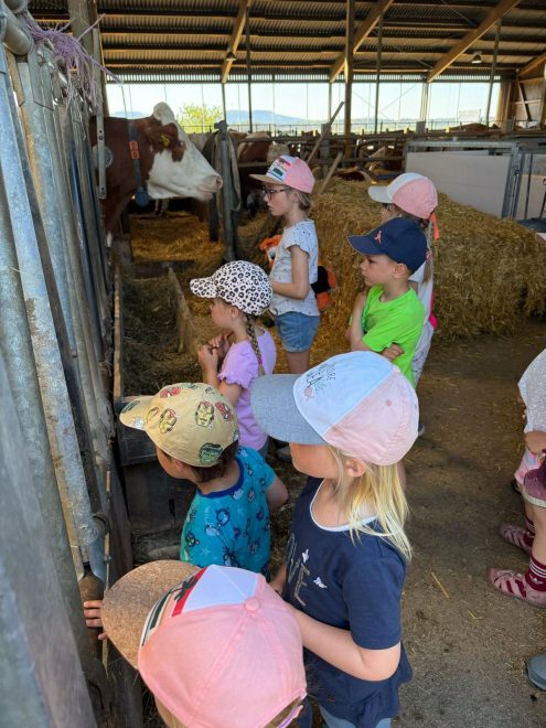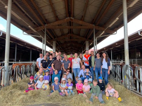 Die Bauernhofpädagogin Alexandra Rau stellte ein tolles Programm – ganz nach dem Motto „Lernen durch Erleben“ – zusammen. Zu Beginn konnten sich die Familien ein Bild des mobilen Hühnerstalls machen. Nachdem die Kinder die Hühner im Auslauf des Hühnerstalls gefüttert hatten, ging es weiter in den Rinderstall und in den Schweinestall, in denen die Familien die Tiere hautnah erleben konnten. Das gemeinsame Grillen und Eis-Essen auf dem Hof rundete den erlebnisreichen Bauernhoftag ab.