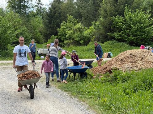 Einen spannenden und lehrreichen Nachmittag im heimischen Wald erlebte die Familiengruppe des Schwäbischen Albvereins Ostdorf. Sieben Familien folgten der Einladung der Ortsgruppe zu einem besonderen Naturerlebnis zwischen Arbeitseinsatz und waldpädagogischen Spielen. Ausgerüstet mit Schubkarren, Rechen und jeder Menge Tatendrang machten sich die Kinder und Erwachsenen zunächst auf den Weg zum Jahresbaumpfad im Ostdorfer Wald. Dort verteilten sie gemeinsam Hackschnitzel, um den Pfad begehbar und gepflegt zu halten. Der kleine Arbeitseinsatz wurde von allen mit viel Elan und Teamgeist angegangen – ganz nach dem Motto: Gemeinsam für die Natur. Im Anschluss führte Förster Mattäus Holleschowsky die Gruppe abseits der bekannten Wege über versteckte Pfade. Dabei erfuhren die Teilnehmerinnen und Teilnehmer Spannendes über die heimische Flora und Fauna – kindgerecht erklärt und mit vielen Mitmachaktionen ergänzt. Ein Highlight waren die waldpädagogischen Spiele, bei denen die Kinder unter anderem auf Holztafeln versteckte Waldtiere suchen durften oder alle gemeinsam den Wurzelaufbau eines Baumes darstellen mussten. Am Ende waren sich alle einig: Es war ein toller Nachmittag, der Naturverbundenheit, Gemeinschaft und Wissen auf spielerische Weise miteinander verband. Die Familiengruppe freut sich schon jetzt auf die nächste Aktion.
