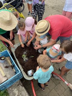 Ein besonderes Highlight des Nachmittags war das Einpflanzen von Salat- oder Kohlrabisetzlingen.